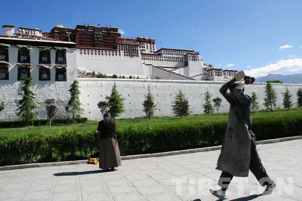 朝佛者围绕布达拉宫虔诚转经 摄影:王昕秀
