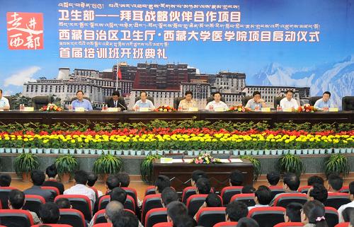 7月8日,“走进西部——万名县级医院医师培训项目”西藏自治区项目启动仪式暨首期培训班开班典礼在西藏大学举行,来自西藏各地(市)县的40名医师将参加基础、专业、公共等科目和临床见习、综合辅导、专科强化等综合培训。