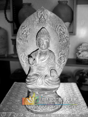 当天,记者见到了这尊唐代银佛像,经现场测量佛像高19.7厘米、宽10.3厘米,为释迦牟尼像,面部丰满,表情丰富,整体为黑色,领口和袖口为金黄色。佛像上的莲花座、火焰纹、珍珠底、背景上的飞天都十分逼真。据持宝人郗晓龙介绍,今年35岁的他爱好古玩字画已有近20年的时间了,这尊银佛像是他多年前从敦煌乡下淘宝得来,佛像的绝大部分材料为银,局部为描金。这件“宝贝”已在他家中珍藏多年,最近中央电视台要在敦煌拍摄一期鉴宝节目,这才拿出来让文物专家进行鉴定。
